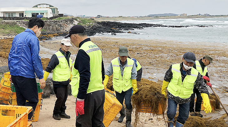 서귀포시 성산읍은 지난 20일 지역 내 해안으로 다량의 괭생이모자반이 유입됨에 따라 주민, 바다환경지킴이 등 인력 17명과 장비를 투입해 괭생이모자반 6t을 수거·처리했다. 현길환 읍장은 "쾌적한 해안환경 조성에 적극 노력하겠다"고 밝혔다.