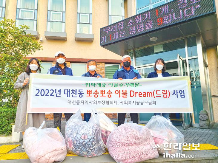 대천동지역사회보장협의체(위원장 김복심)는 지난 19일 독거노인 15가구를 방문해 겨울이불을 수거해 세탁하는 '뽀송뽀송 이불Dream(드림)' 사업을 추진했다. 이 사업은 신체적·경제적 어려움으로 이불빨래가 힘든 취약계층의 일상생활을 지원해 쾌적한 환경을 제공하려는 취지로 마련됐다.