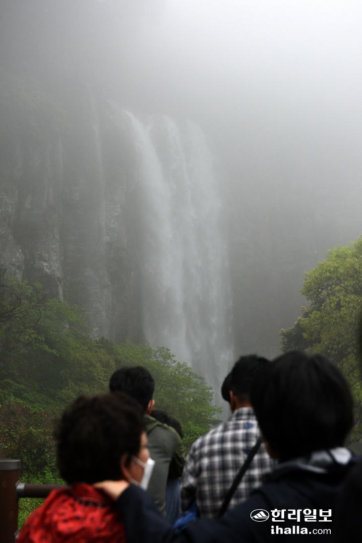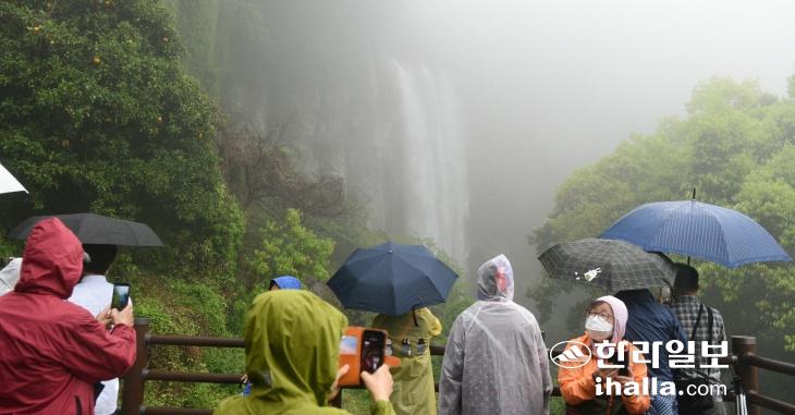 제주에 많은 비가 내린 26일 서귀포시 강정동에 있는 엉또폭포가 세찬 물줄기를 뿜어내고 있다. 이상국기자