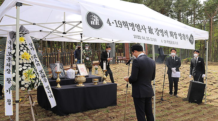 고 강영석 4·19혁명공로자 안장식이 지난 25일 국립제주호국원 제5묘역(민주유공자 묘역)에서 거행됐다.