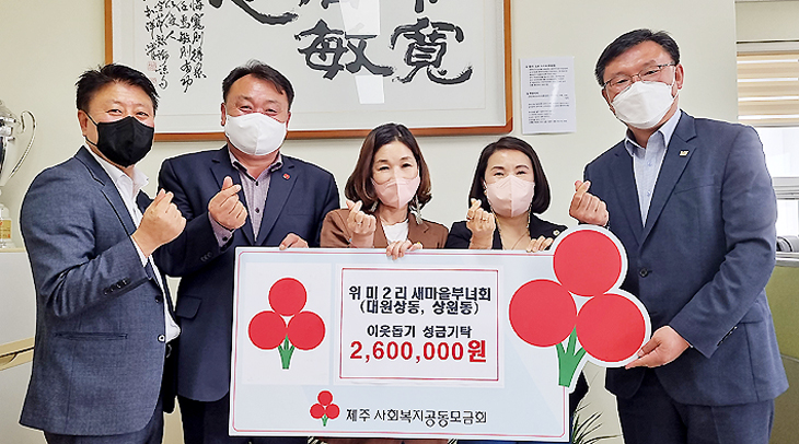 서귀포시 위미2리 새마을부녀회(대원상동, 상원동)는 지난 25일 남원읍을 방문해 이웃돕기 성금 260만원을 남원읍지역사회보장협의체(위원장 현홍민)에 지정 기탁했다. 이 성금은 부녀회에서 마을의 농가를 가가호호 방문해 농약병 수거해 판매한 수익금이다.