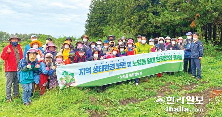 제주시 노형동통장협의회(회장 고성룡)는 지난달 30일 회원 40명이 참여해 해안동 일대 오름 환경 정화 활동을 실시했다. 이날 참가자들은 노형동 나눔냉장고에 기부하기 위해 고사리 채취 작업도 벌였다.