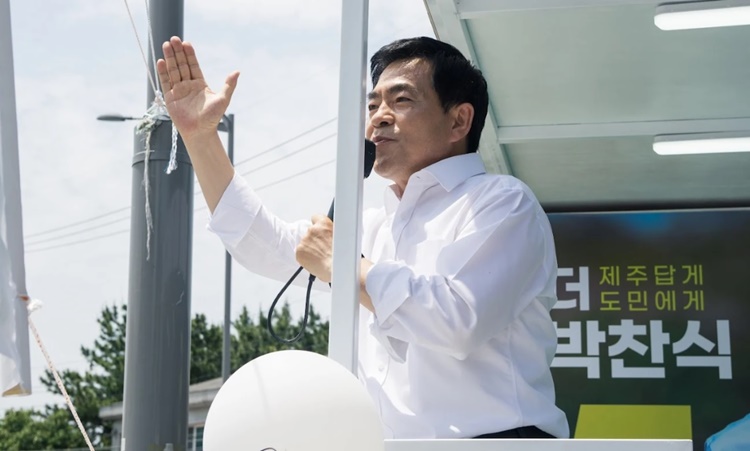 무소속 박찬식 제주도지사 후보는 24일 제주대학교 정문에서 유세를 갖고 거대 양당 후보들과 차별화를 꾀하며 젊은 유권자의 표심에 호소했다.