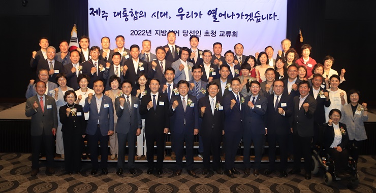 이날 교류회에는 오영훈 제주도지사 당선인과 김광수 제주도교육감 당선인, 김한규(제주시을) 국회의원, 제주도의원 당선인과 지역 유관기관장, 상공인 등 200여명이 참석했다.