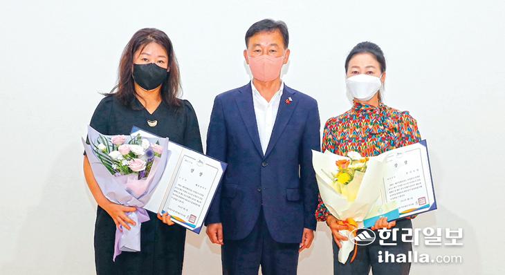 서귀포시는 4일 시청 별관 문화강좌실에서 '서귀포시 건강 캠페인 송 체조 공모전' 시상식을 개최했다. 혼디모앙팀이 최우수상의 영예를 안았고, 제라진키즈팀이 우수상을 차지했다. 이들은 서귀포시장상과 함께 각각 상금 50만원과 30만원을 받았다.