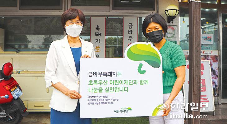 서귀포시 서귀동에 위치한 금바우 흑돼지(대표 윤현정)는 지난 1일 초록우산 어린이재단 제주지역본부(본부장 박정숙)와 서귀포시후원회(회장 김미자)가 진행하고 있는 나눔 릴레이 캠페인에 동참했다.