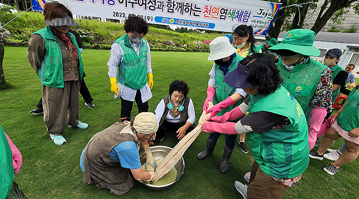 서귀포시새마을부녀회(회장 나성순)는 지난 6일 표선면 참곱다체험장에서 읍면동 부녀회장과 다문화가정 이주여성 60여명이 참여한 가운데 천염염색체험 교실을 운영했다.