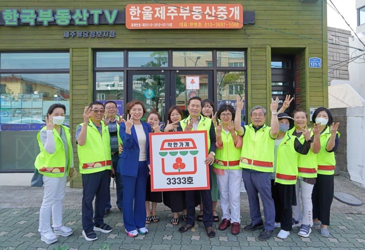 지난 8일 제주시 용담2동 한울제주부동산중개 앞에서 착한가게 3333호 가입식이 열리고 있다. 제주사회복지공동모금회 제공