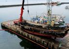 12일 인양 작업이 진행 중인 한림항. 강희만기자
