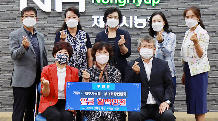제주시농협(조합장 고봉주) 부녀회장연합회(회장 양정아)는 지난달 28일 (사)제주도신체장애인복지회에 성금 100만원을 기탁했다.
