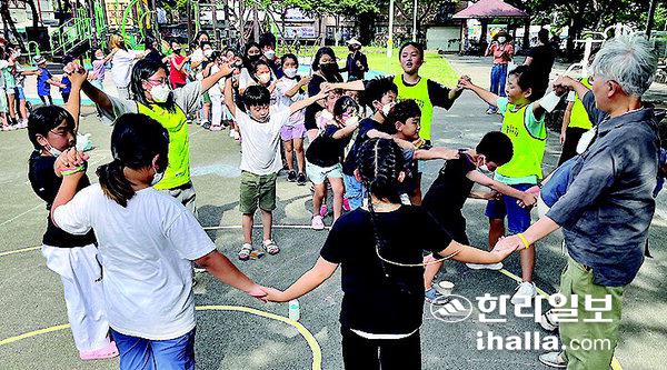 제주특별자지도 지역아동센터연합회(회장 허정례)는 최근 ‘놀멍 팡팡 크는 아이’라는 캐치프레이즈 아래 '우리동네 놀이zone' 만들기 활동을 제주시 외도 부영2차 아파트 뽀로로 놀이터에서 운영했다.