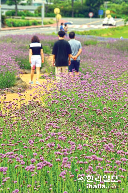 24일 제주시 이호동 공한지에 조성된 한 공원에 버베나꽃이 활작 피어 사람들의 시선을 사로잡고 있다. 강희만기자