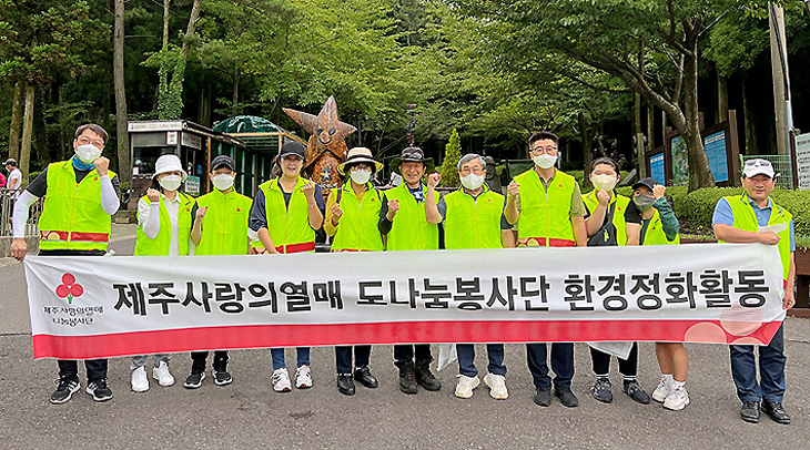 제주사회복지공동모금회(회장 강지언) 도나눔봉사단(단장 김동오)은 지난 28일 제주시 절물자연휴양림에서 단원 20여명이 참여한 가운데 절물 환경정화 활동을 진행했다. 이날 환경정화 활동은 휴가철 방문객들이 오고가며 남긴 생활쓰레기 수거를 위해 마련됐다.