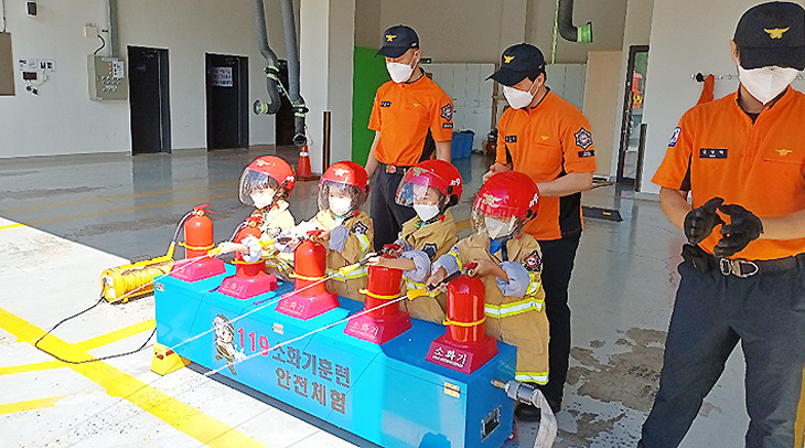 제주소방서 아라119센터(센터장 고명호)는 최근 튼튼어린이집 원아들을 상대로 소방안전 체험학습을 실시했다. 체험학습을 통해 튼튼어린이집 원아들은 소화기 사용법 등을 익히고 소방차량 탑승 체험을 진행했다.