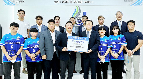 제주 토종기업인 휴온종합건설(주) 계열사인 (주)휴온인베스트먼트(대표 김경보)는 29일 제주대학교 여자축구클럽 '제대로'의 후원을 위한 발전기금 5000만원을 김일환 총장에게 전달했다.