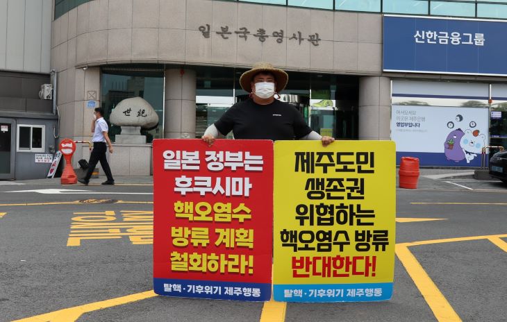 탈핵·기후위기 제주행동은 주제주일본국총영사관 앞에서 한 달간 일본 핵오염수 방류 철회를 촉구하는 1인 시위를 진행했다. 탈핵·기후위기 제주행동 제공