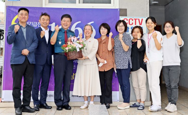 이상률 제주경찰청장(왼쪽부터 세 번째)은 지난 2일 여성긴급전화 1366 제주센터를 방문해 추석 가정폭력 예방을 위한 현장 간담회를 진행했다. 제주경찰청 제공