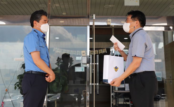 제주지방해양경찰청은 8일 추석을 맞아 복지시설을 방문해 직원 기부금으로 조성한 '제주지방해양경찰청 아름다운 동행' 기금을 전달하며 이웃사랑을 실천했다. 제주지방해양경찰청 제공