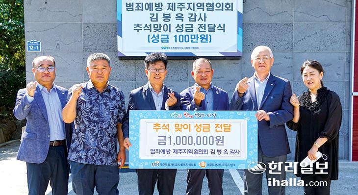 김봉옥 법무부 청소년범죄예방위원 제주지역협의회 감사(세기공업사 대표)는 지난 7일 추석을 맞아 제주사회복지협의회에 이웃사랑 성금 100만원을 전달했다.