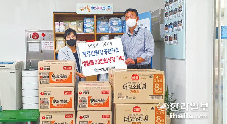 제주산림항공관리소(소장 김태형)는 지난 7일 취약계층에게 전달해 달라며 30만원 상당의 물품(라면, 김)을 제주시 아라동주민센터(동장 신금록)에 기탁했다.