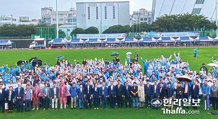 제주특별자치도관광협회(회장 부동석)는 15일 제주시 애향운동장에서 도내 관광종사자와 유관기관 관계자 등 1000여명이 참여한 가운데 '2022 제주관광인 한마음대회'를 개최했다. 이날 한마음대회에서는 제49회 세계관광의 날을 기념해 관광진흥유공자 22명에 대한 표창과 회원사 자녀 12명에게 장학금을 전달하는 한편 족구, 줄다리기, 이어달리기 등 친선 경기가 진행됐다.