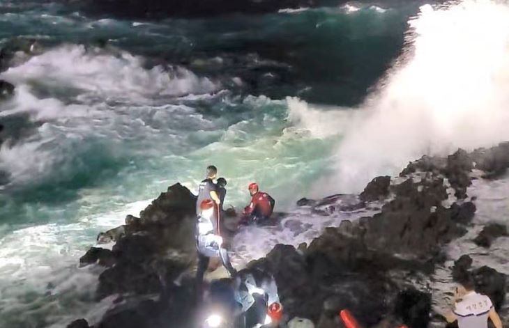 지난 18일 제주시 용담3동의 갯바위에서 실종된 낚시객을 찾기 위한 수색작업이 진행되고 있다. 제주해양경찰서 제공
