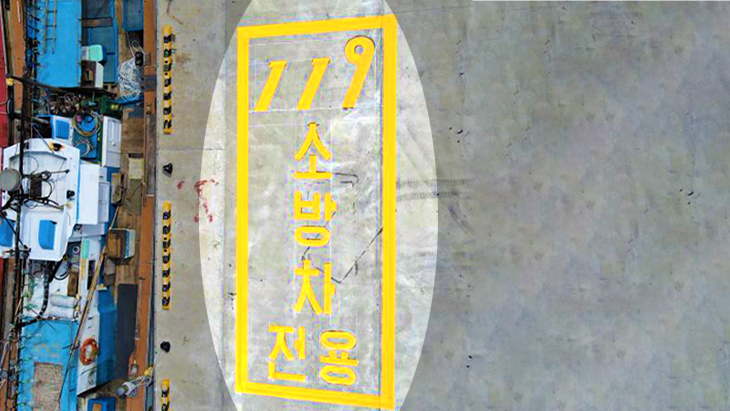 서귀포시 성산항 내에 신설된 소방차 전용 주차구역. 제주동부소방서 제공