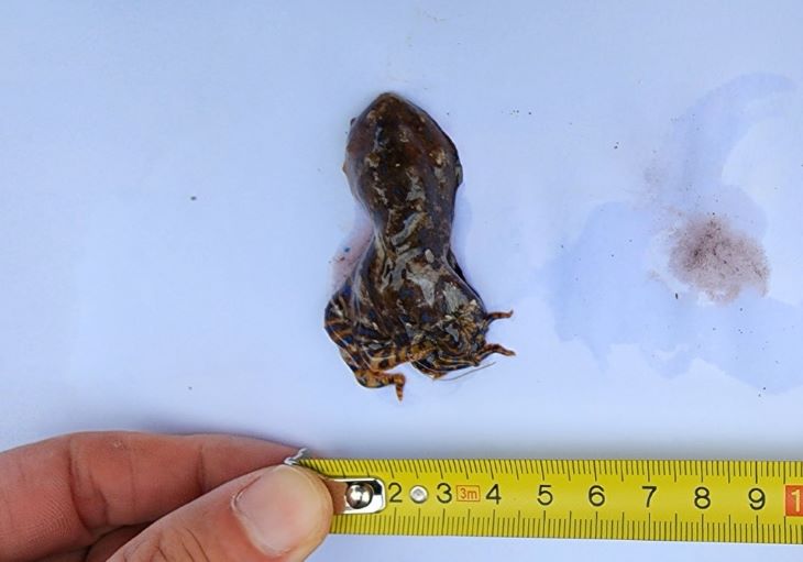 지난 21일 제주시 구좌읍 김녕해수욕장 인근 해상에서 발견된 파란고리문어. 제주해양경찰서 제공