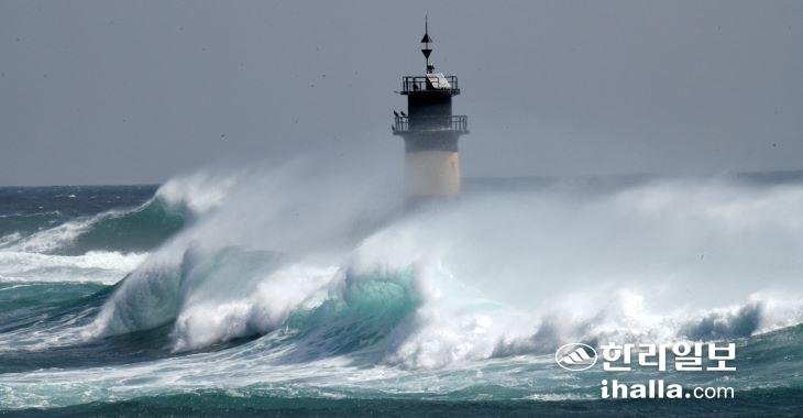 지난달 18일 제14호 태풍 난마돌의 영향으로 서귀포시 성산읍 온평리 해안에 높은 파도와 함께 강한 바람이 불고 있다. 한라일보DB