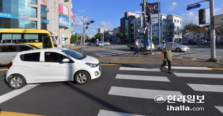 [한라일보] 보행자의 안전을 위해 차량 운전자의 보행자 보호의무를 강화하는 개정된 도로교통법이 시행된 지 3개월이 지났지만 운전자들의 횡단보도 일단정지 습관은 여전히 부족한 것으로 나타났다.