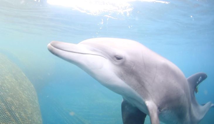 해양방류를 위해 가두리에서 야생적응 훈련을 받던 남방큰돌고래 비봉이의 모습. 해양수산부 제공