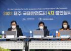 지난 8월 국제안전도시 4차 공인 심사에 나선 오영훈 지사와 박근오 제주소방안전본부장.
