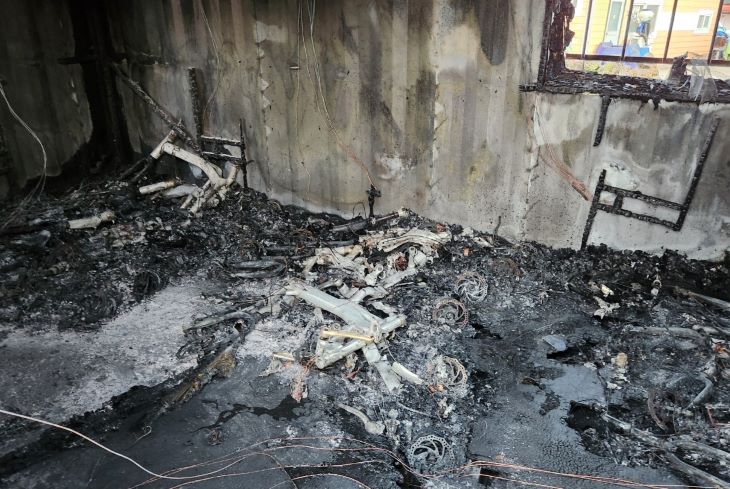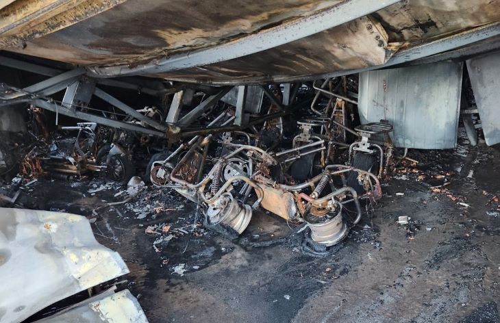 31일 새벽 화재가 발생한 제주시 우도면 연평리의 전기 오토바이 대여점. 제주동부소방서 제공