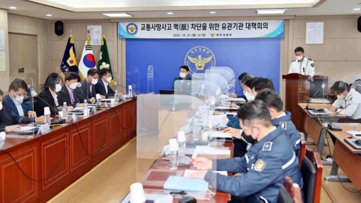 제주경찰청은 지난 31일 도내 교통 관련 유관기관과 함께 '교통 사망사고 맥(脈) 차단을 위한 대책회의'를 개최했다. 제주경찰청 제공