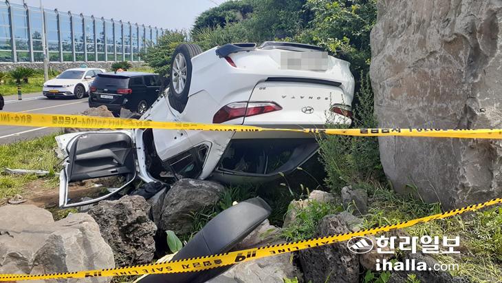 지난 7월 20일 제주시 애월읍에서 발생한 렌터카 음주운전 교통사고 현장. 한라일보DB