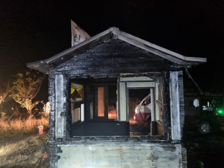 화재로 소실된 가시오름 정상 산불감시 초소. 제주서부소방서 제공