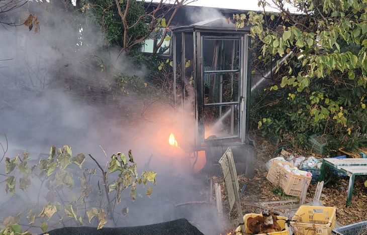지난 11일 화재가 발생한 제주시 영평동의 한 밭에서 소방대원들이 화재를 진압하고 있다. 제주소방서 제공