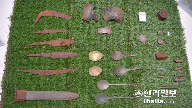 제주시 애월읍 노로오름 일대 4·3유적지에서 발굴된 유물들. 이상국기자