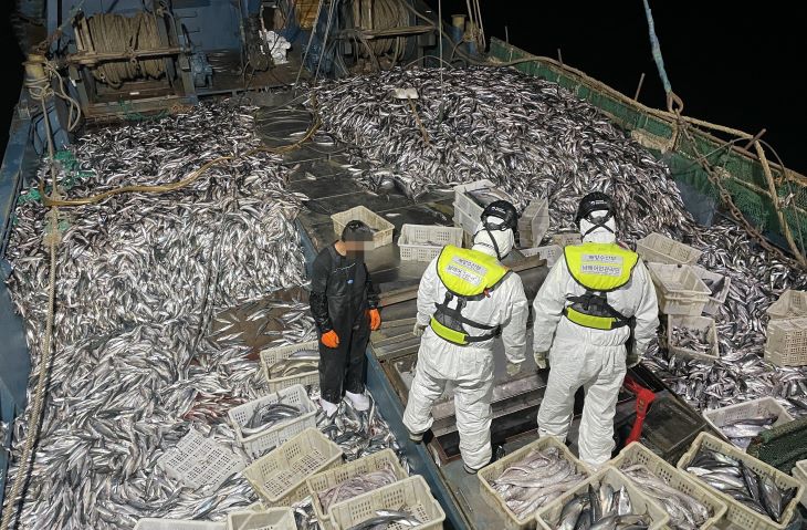 지난 15일 남해어업관리단에 단속된 중국 쌍타망 어선의 모습. 해양수산부 제공