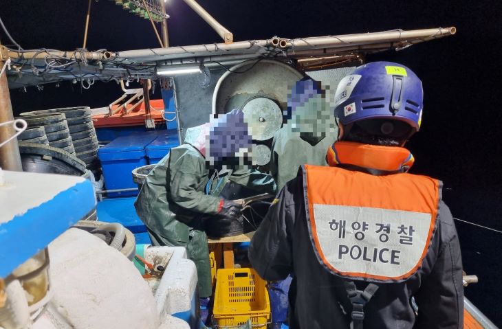 서귀포해경이 지난 20일 태흥리포구 남쪽 약 6.8㎞ 해상에서 어선에 대한 검문검색을 통해 불법 취업 외국인 선원들을 적발했다. 서귀포해양경찰서 제공