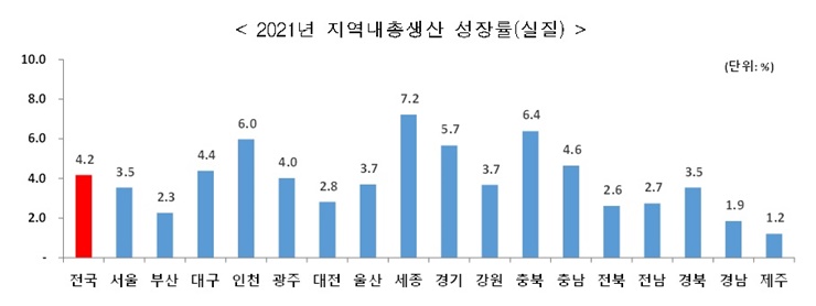 실질 지역내총생산 1.2% 증가…전국 4.2% 밑돌아