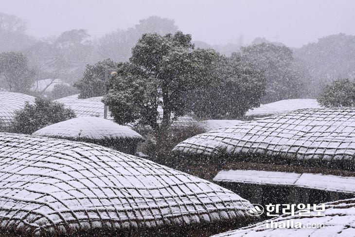 폭설이 쏟아지는 서귀포 성읍민속마을. 강희만기자