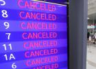 23일 대다수의 항공기가 결항 또는 취소되며 마비된 제주공항.