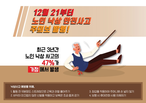 [한라일보] 제주특별자치도 소방안전본부가 29일 '겨울철 노인 낙상사고 주의보'를 발령한다.