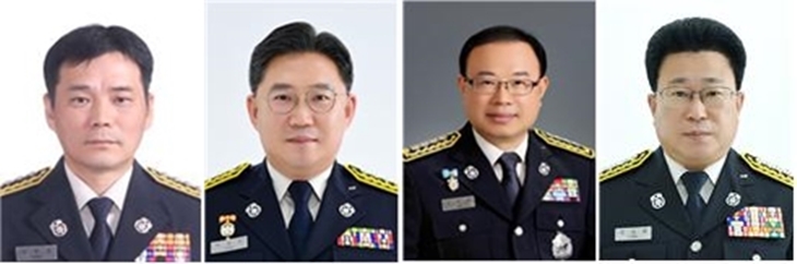사진 왼쪽부터 양인석 신임 제주소방서장, 박광찬 신임 서귀포소방서장, 고재우 신임 예방대응과장, 김승용 신임 119종합상황실장