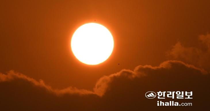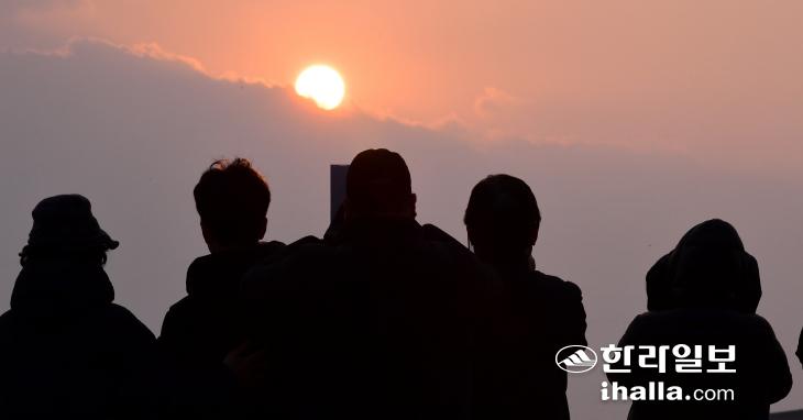 1일 서귀포시 성산읍 신양리 해안에서 떠오르는 새해 첫 일출. 강희만기자