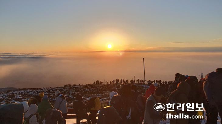 2023년 새해가 밝았다. 새해 첫날인 1월 1일 제주 곳곳에는 새해 첫날 해돋이를 보며 한 해의 안녕을 기원하는 발길이 이어졌다. 사진은 1일 한라산 정상 백록담에서 바라본 일출. 코로나19로 중단됐던 새해맞이 야간산행이 이날 2년 만에 허용되면서 사전에 탐방을 예약한 1500명이 계묘년 첫 해돋이를 한라산에서 맞이했다. 이상국기자
