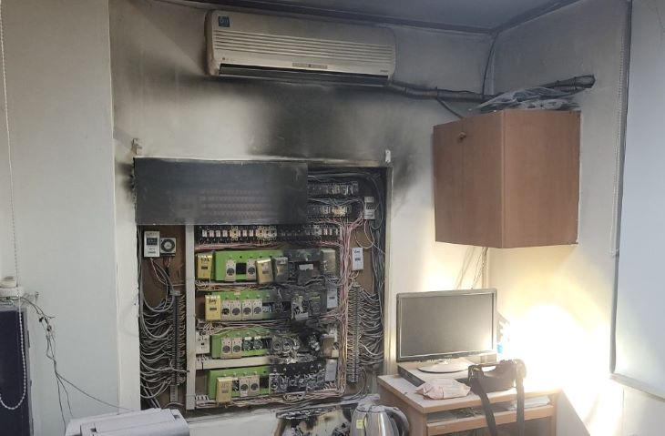 18일 새벽 화재가 발생한 제주시 연동의 한 호텔 보일러 패널. 제주소방서 제공