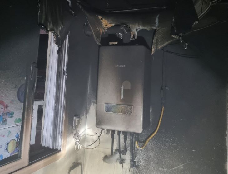 지난 18일 새벽 화재가 발생한 제주시 애월읍 한 공동주택 다용도실. 제주서부소방서 제공