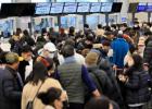24일 제주 기점 항공기 전편이 결항되면서 이날 제주국제공항이 대체 항공편을 구하려는 사람들로 북적이고 있다. 강희만기자